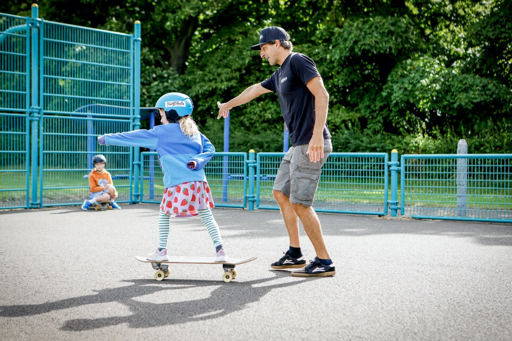 Our kids’ sessions introduce balance, board skills and safe movement in a fun, supportive setting. Adult sessions focus on technique, flow and adapting surf-style turns on concrete.