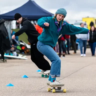 Booking was essential and places filled fast, giving families a safe, fun introduction to surfskating amid the festival buzz.